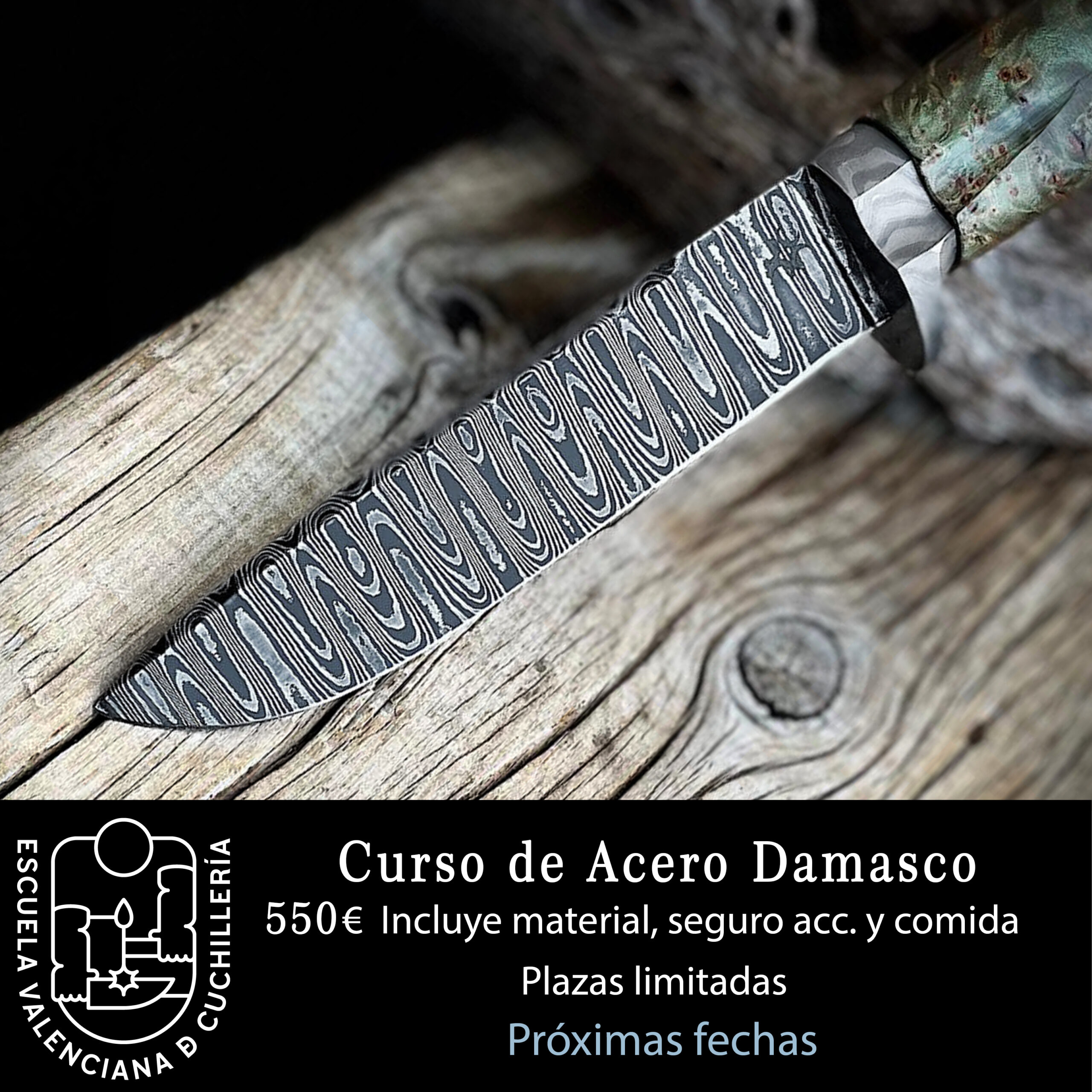En la Escuela Valenciana de Cuchillería, te invitamos a sumergirte en una experiencia única donde podrás forjar tu propio acero de “Damasco” y llevarte a casa una obra maestra que pocos podrán presumir. Este curso va más allá de simplemente aprender una técnica antigua; se trata de crear algo con tus propias manos, algo que no se encuentra en una tienda. Cuando completes el curso, tendrás en tus manos un cuchillo de acero Damasco que impresionará a cualquiera. Muy pocos de tus amigos podrán igualar la sensación de tener una pieza forjada en capas, donde cada patrón cuenta la historia de tu esfuerzo y habilidad.